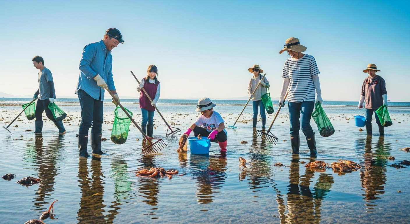 - "흔적"을 찾아라: 갯벌이나 모래밭에 난 작은 구멍, 혹은 조개가 숨어있는 듯한 미묘한 흔적을 잘 관찰하면 의외의 수확을 얻을 수 있어요. 이쑤시개 같은 얇은 막대로 구멍을 찔러보는 것도 한 방법입니다.